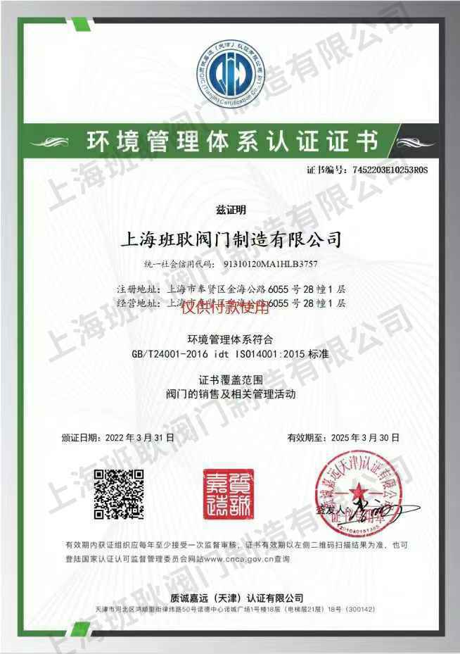 环境管理体系认证证书